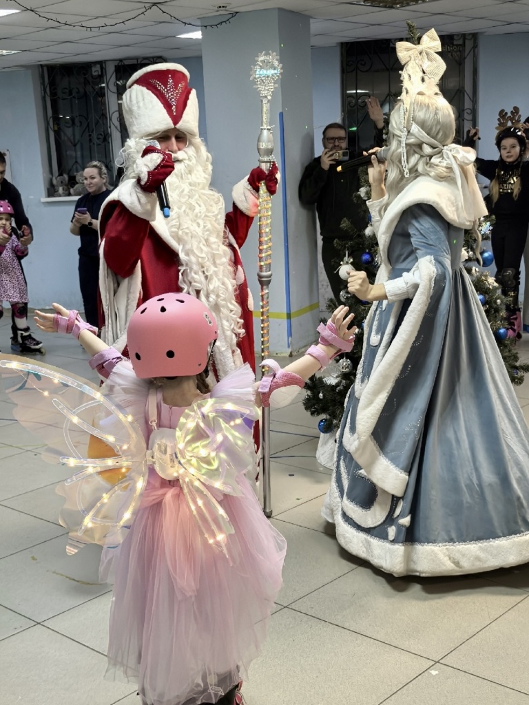 Праздник прошёл в лучших рождественских традициях. Участников и гостей встречали Дед Мороз и Снегурочка, пространство наполняли яркие костюмы, искренние улыбки и сказочное настроение. В этот день на ролики вышли феи, снеговики, лесные жители и другие волшебные персонажи, создавая атмосферу настоящего чуда.